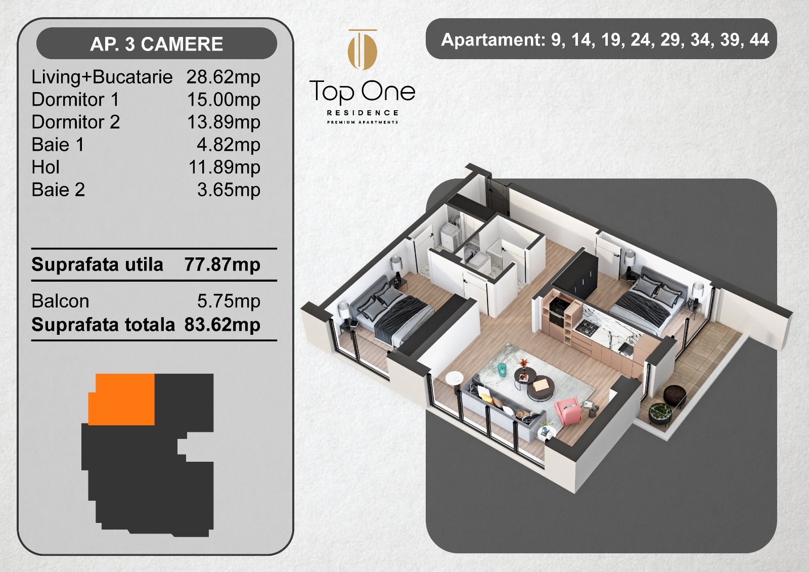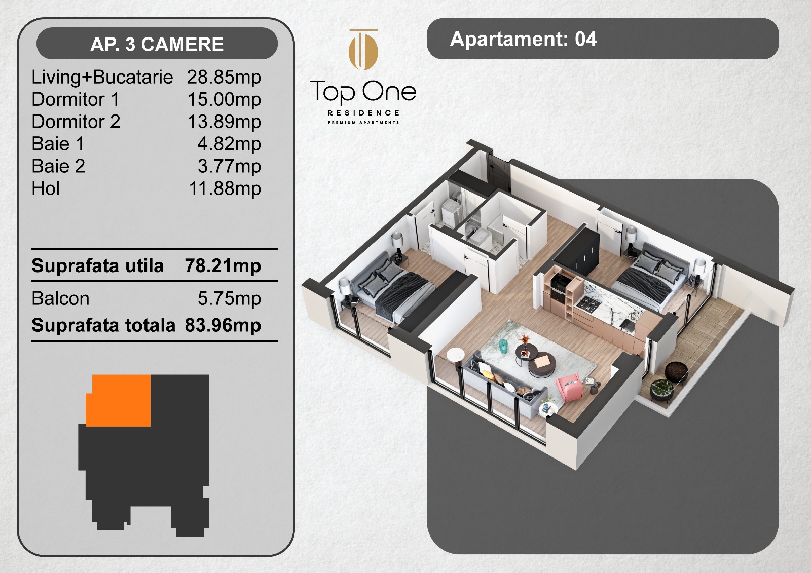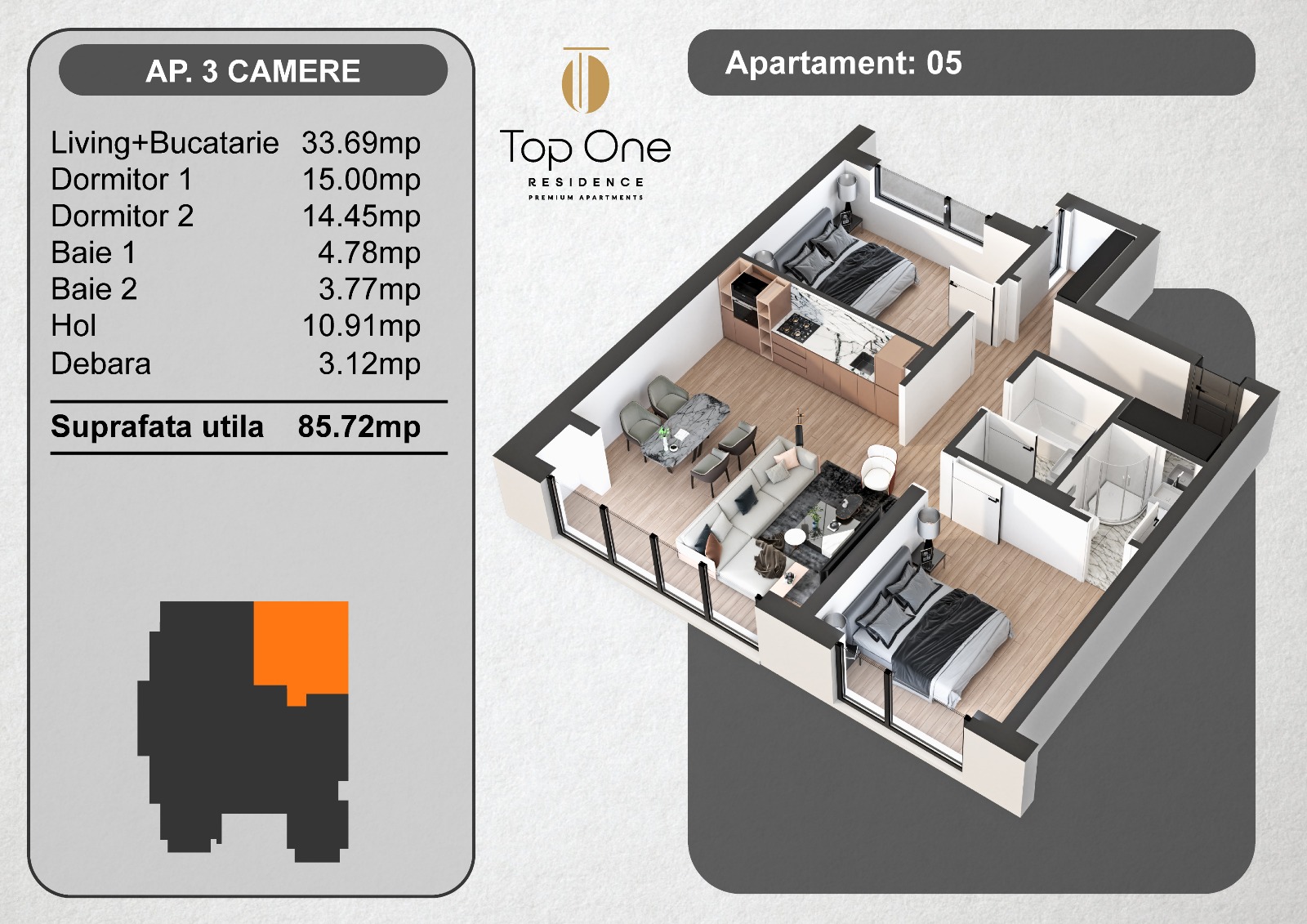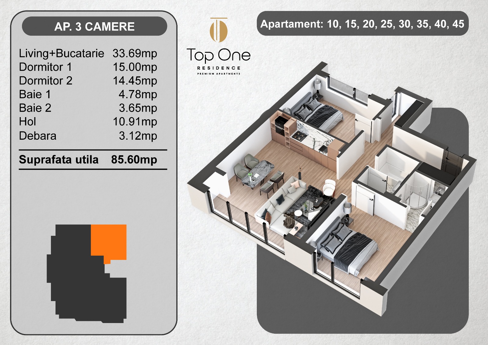 Top One Residence Premium Apartments este alegerea ideala pentru profesionisti, familii active sau investitori in domeniul imobiliar, care doresc un echilibru perfect intre stil de viata urban, confort premium si pozitie centrala.